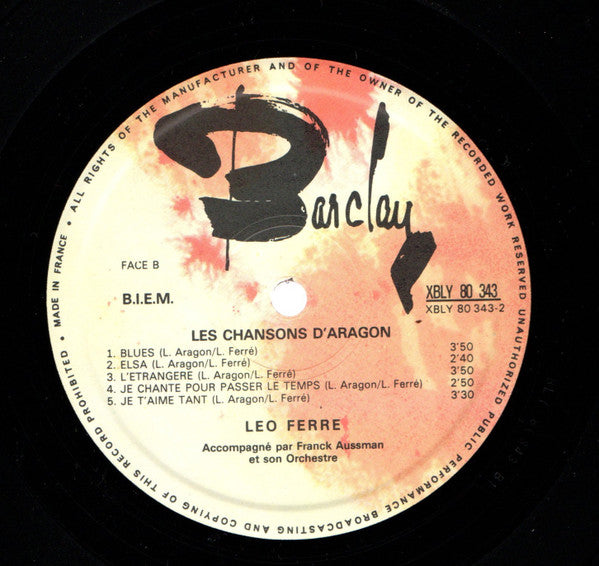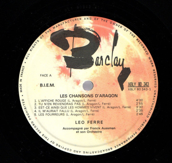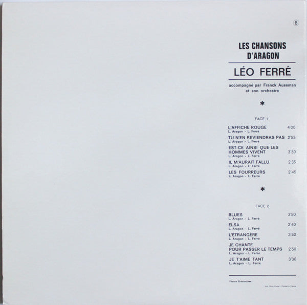 A1. L'Affiche Rouge 4:00 A2. Tu N'en Reviendras Pas 2:55 A3. Est-Ce Ainsi Que Les Hommes Vivent 3:30 A4. Il N'aurait Fallu 2:35 A5. Les Fourreurs 2:45 B1. Blues 3:50 B2. Elsa 2:40 B3. L'Étrangère 3:50 B4. Je Chante Pour Passer Le Temps 2:50 B5. Je T'Aime Tant 3:30