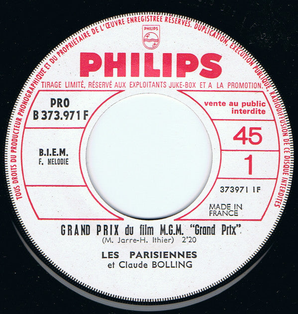 Les Parisiennes Et Claude Bolling - Grand Prix Du Film M.G.M. "Grand Prix" (7", Single, Jukebox, Ltd, Promo)