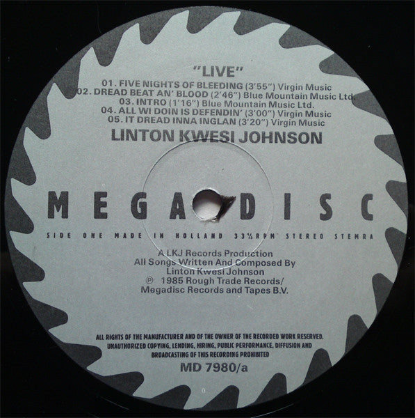 Recorded At Queen Elizabeth Hall Remixed At Eden Studios Mastered At The Sound Clinic Phonographic Copyright (p) Rough Trade Records Phonographic Copyright (p) Megadisc Records & Tapes B.V. Licensed From Rough Trade Records Marketed By Megadisc Records & Tapes B.V. Licensed From LKJ Records LTD Published By Blue Mountain Music Ltd. Published By Virgin Music Lacquer Cut At Holland Cutting Recorded At Queen Elizabeth Hall