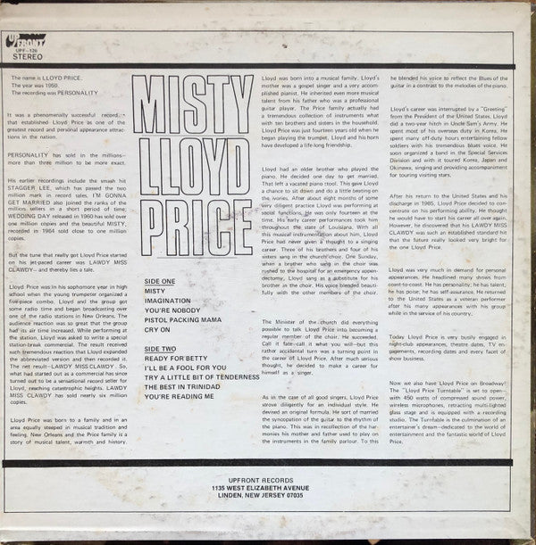 A1. Misty A2. Imagination A3. You're Nobody A4. Pistol Packing Mama A5. Cry On B1. Ready For Betty B2. I'll Be A Fool For You B3. Try A Little Bit Of Tenderness B4. The Best In Trinidad B5. You're Reading Me