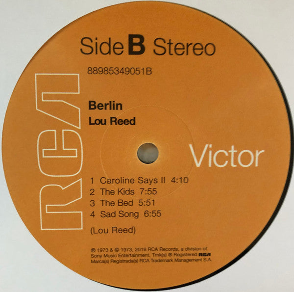 A1. Berlin 3:23 A2. Lady Day 3:40 A3. Men Of Good Fortune 4:37 A4. Caroline Says I 3:57 A5. How Do You Think It Feels 3:42 A6. Oh, Jim 5:13 B1. Caroline Says II 4:10 B2. The Kids 7:55 B3. The Bed 5:51 B4. Sad Song 6:55