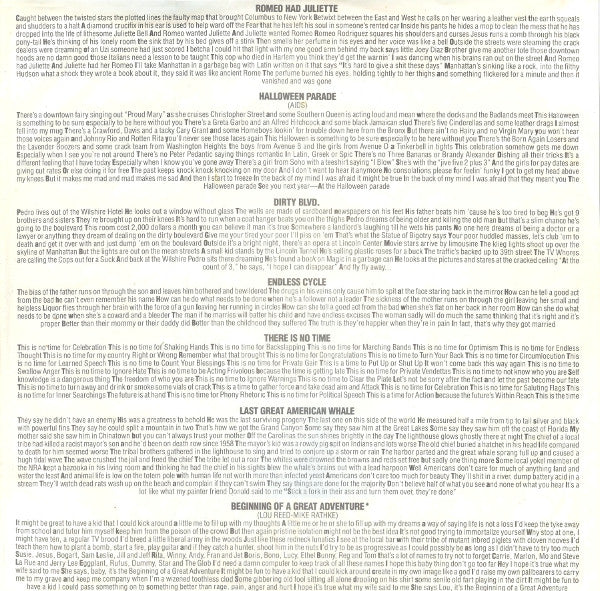 A1. Romeo Had Juliette 3:09 A2. Halloween Parade 3:33 A3. Dirty Blvd. 3:29 A4. Endless Cycle 4:01 A5. There Is No Time 3:45 A6. Last Great American Whale 3:42 A7. Beginning Of A Great Adventure 5:00 B1. Busload Of Faith 4:50 B2. Sick Of You 3:25 B3. Hold On 3:24 B4. Good Evening Mr. Waldheim 4:35 B5. Xmas In February 2:55 B6. Strawman 5:54 B7. Dime Store Mystery 5:01