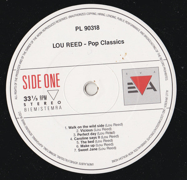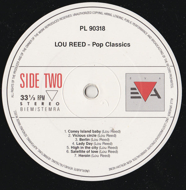 A1. Walk On The Wild Side A2. Vicious A3. Perfect Day A4. Caroline Says II A5. The Bed A6. Make Up A7. Sweet Jane B1. Coney Island Baby B2. Vicious Circle B3. Berlin B4. Lady Day B5. High In The City B6. Satellite Of Love B7. Heroin