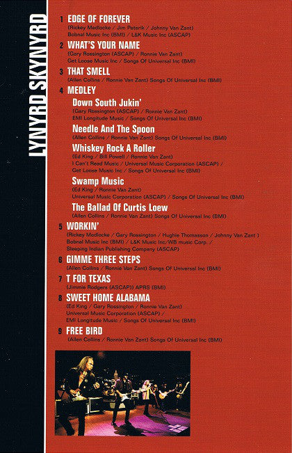 1. Edge Of Forever 2. What's Your Name 3. That Smell . Medley 4-1. Down South Jukin' 4-2. Needle And The Spoon 4-3. Whiskey Rock A Roller 4-4. Swamp Music 4-5. The Ballad Of Curtis Loew 5. Workin' 6. Gimme Three Steps 7. T For Texas 8. Sweet Home Alabama 9. Free Bird