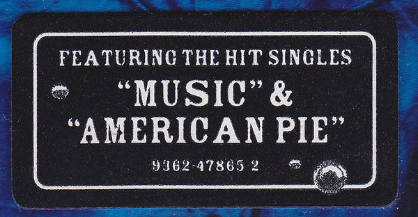 Sticker 1: 'FEATURING THE HITS SINGLES "MUSIC" & "AMERICAN PIE"' '9362-47865 2'