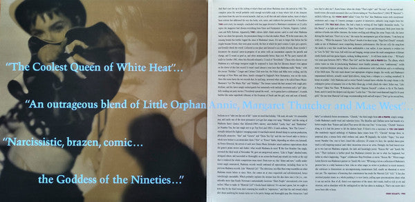 Gatefold cover, sticker on shrinkwrap: "MADONNA'S 1990 ALBUM OF GREATEST HITS - DOUBLE VINYL - Includes VOGUE LIKE A PRAYER MATERIAL GIRL 603497859344", printed inner sleeves.