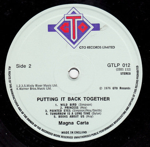 Published By Misty River Music Ltd. Published By Magna Carta Music Published By Warner Bros. Music Phonographic Copyright (p) GTO Records Ltd. Recorded At Sound Techniques, London Recorded At Sawmills Studio Printed By Robert Stace