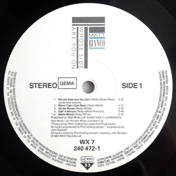 Phonographic Copyright (p) WEA Musik GmbH Copyright (c) WEA Musik GmbH Pressed By Record Service Alsdorf Lacquer Cut At CBS Studios, London