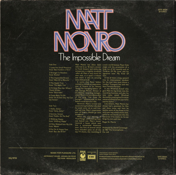Month of release from Matt Monro Discography Record collector August 1987 p.53