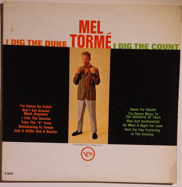 A1. I'm Gonna Go Fishin' 2:23 A2. Don't Get Around Much Anymore 2:29 A3. I Like The Sunshine 3:14 A4. Take The 'A' Train 2:52 A5. Reminiscing In Tempo 3:17 A6. Just A Sittin' And A Rockin' 2:17 . Mel Digs The Count B1. Down For Double 2:31 B2. I'm Gonna Move To The Outskirts Of Town 2:31 B3. Blue And Sentimental 3:55 B4. Oh What A Night For Love 3:30 B5. Sent For You Yesterday (And Here You Come Today) 2:40 B6. In The Evening (When The Sun Goes Down) 3:20