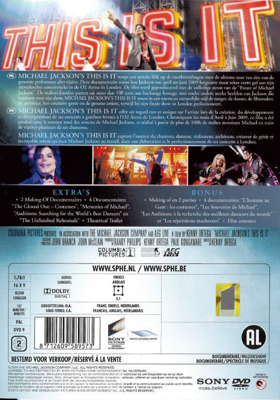 1. This Is It 2. 2 Making-Of Documentaries . 4 Featurettes 3.1. The Gloved One - Costumes 3.2. Memories Of Michael 3.3. Auditions: Searching For The World's Best Dancers 3.4. The Unfinished Rehearsals 4. Theatrical Trailer