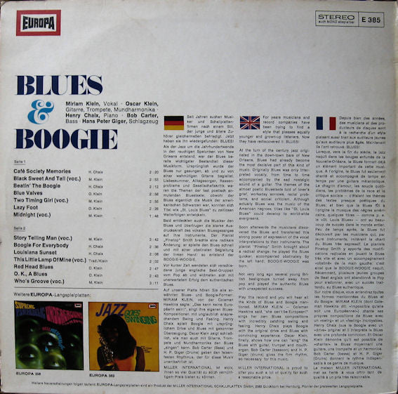 Miriam Klein, Oscar Klein, Henri Chaix, Bob Carter , Peter Giger - Blues & Boogie (LP)