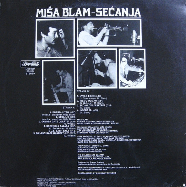 A1. Dobro Jutro 4:07 A2. Sećanje 8:00 A3. Golden Gate Quartet 2:26 A4. Bočekova Balada 3:37 A5. J. S. Bach Šala 1:14 A6. Golden Gate Quartet (Liv) 2:22 B1. Uvelo Lišće 4:38 B2. Idemo Odmah 3:54 B3. Sedam Dvadesetpet 7:25 B4. Insert 12 4:53