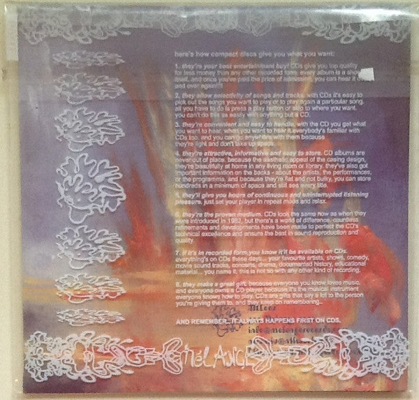 Comes with 2 Melange inserts and is put in a Melange plastic outer sleeve with a story about the superiority of CD's