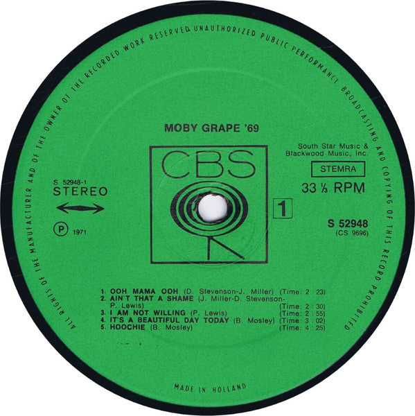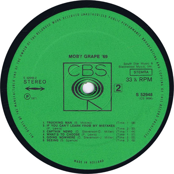 Released on a green CBS label. Printed in Holland The XSM string is stamped; the other strings are etched.
