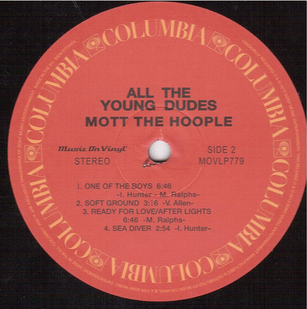 A1. Sweet Jane 4:20 A2. Momma's Little Jewel 4:26 A3. All The Young Dudes 3:31 A4. Sucker 4:58 A5. Jerkin' Crocus 4:00 B1. One Of The Boys 6:46 B2. Soft Ground 3:16 B3. Ready For Love/After Lights 6:46 B4. Sea Diver 2:54