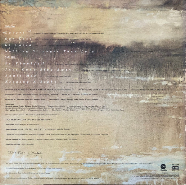 A1. Lovers 3:47 A2. Our Love 5:22 A3. La Costa 3:50 A4. Nothing Stronger Than Love 4:51 B1. Be Thankful 3:50 B2. Just Can't Stay Away 5:24 B3. Annie Mae 4:02 B4. Keeping A Light 4:02
