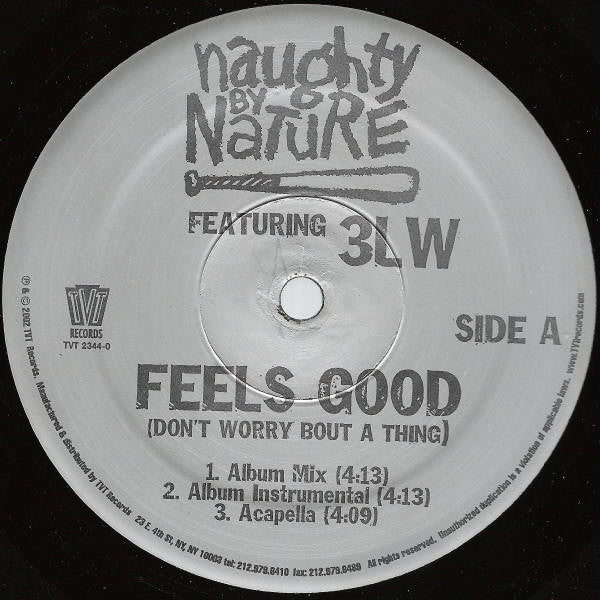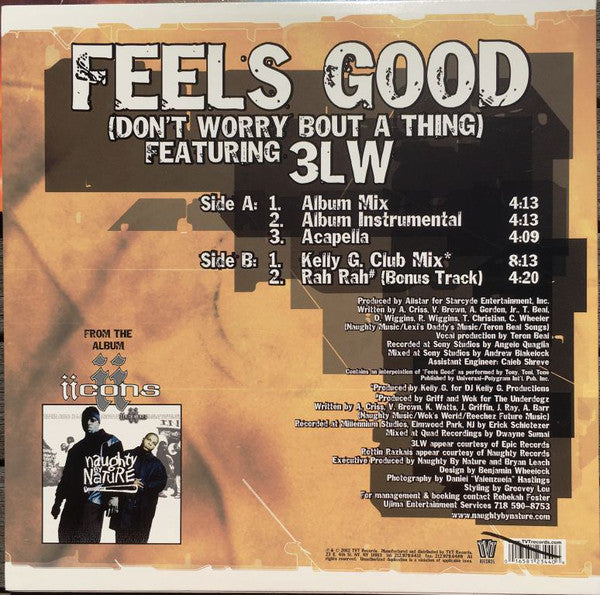 A1. Feels Good (Don't Worry Bout A Thing) (Album Mix) 4:13 A2. Feels Good (Don't Worry Bout A Thing) (Album Instrumental) 4:13 A3. Feels Good (Don't Worry Bout A Thing) (Acapella) 4:09 B1. Feels Good (Don't Worry Bout A Thing) (Kelly G. Club Mix) 8:13 B2. Rah Rah 4:20