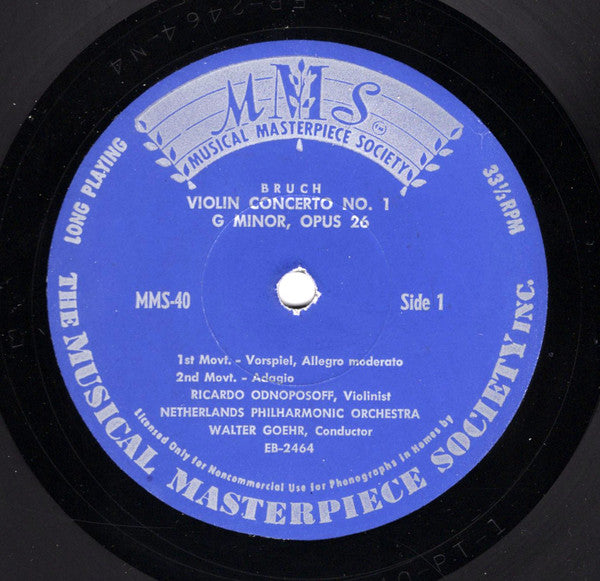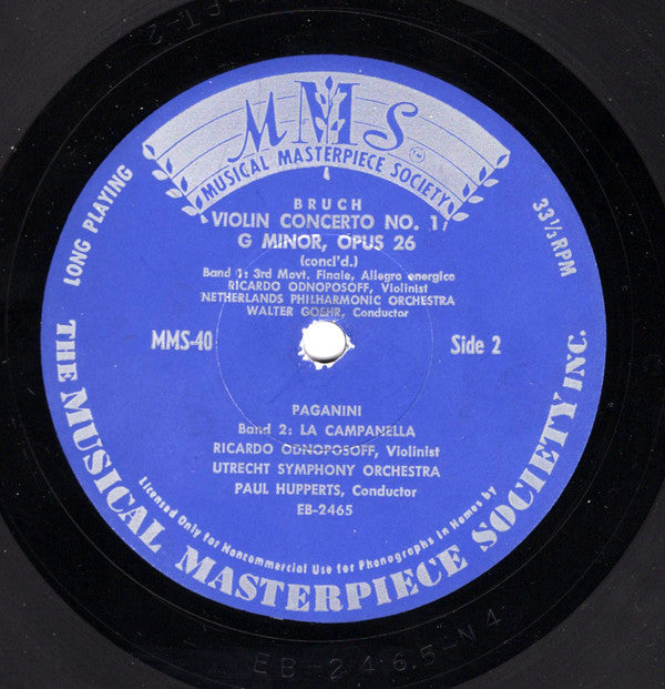 Max Bruch / Niccolò Paganini – Ricardo Odnoposoff, Nederlands Philharmonisch Orkest, Walter Goehr / Utrechts Stedelijk Orkest , Paul Hupperts - Violin Concerto No. 1 G Minor, Op. 26 / La Campanella (10", Mono)
