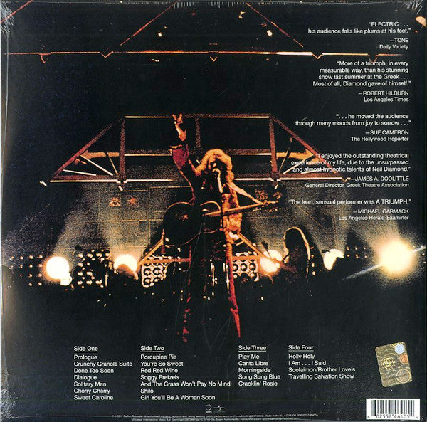 A1. Prologue 3:08 A2. Crunchy Granola 4:27 A3. Done Too Soon 3:23 A4. Dialogue 1:23 A5. Solitary Man 3:14 A6. Cherry Cherry 4:43 A7. Sweet Caroline 4:06 B1. Porcupine Pie 1:52 B2. You're Too Sweet 2:18 B3. Red Red Wine 4:19 B4. Soggy Pretzels 2:57 B5. And The Grass Won't Pay No Mind 4:22 B6. Shilo 3:30 B7. Girl You'll Be A Woman Soon 2:49 C1. Play Me 4:46 C2. Canta Libre 5:27 C3. Morningside 5:36 C4. Song Sung Blue 4:53 C5. Cracklin' Rosie 2:45 D1. Holly Holy 6:19 D2. I Am... I Said 6:10 D3. Soolaimon - Brother Love's Travelling Salvation Show 9:36