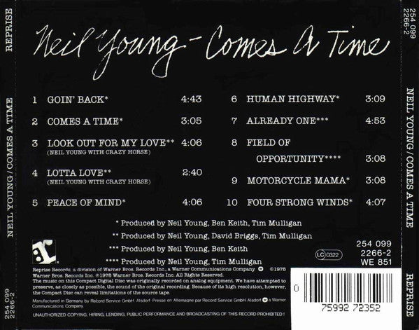 1. Goin' Back 4:422. Comes A Time 3:073. Look Out For My Love 4:064. Lotta Love 4:065. Peace Of Mind 2:406. Human Highway 3:107. Already One 4:558. Field Of Opportunity 3:109. Motorcycle Mama 3:1110. Four Strong Winds 4:05