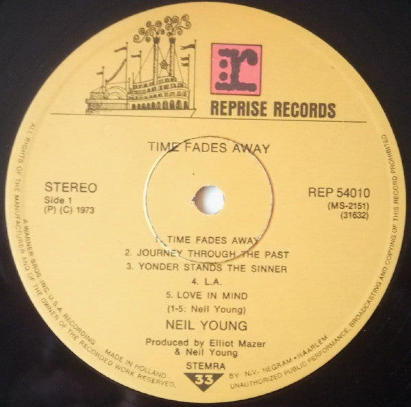 A1. Time Fades Away 5:37 A2. Journey Through The Past 3:23 A3. Yonder Stands The Sinner 3:12 A4. L.A. 3:11 A5. Love In Mind 1:56 B1. Don't Be Denied 5:18 B2. The Bridge 3:05 B3. Last Dance 8:45
