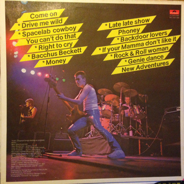 On back cover: Recorded with the Mirasound mobile in Veerleveen, Oost-Groningen. (NL) Mixed at Wisseloord Studios, Hilversum, Holland. December 1979 and January 1980. All songs except A1, A4 and B2 published by Universal Songs trading as Lydalady Music. Produced by George Kooymans for Red Bullet. On labels: ℗ 1980 Made in Holland. Almost identical to [m147267: - "℗ 1980" is printed above the white middle frame - Cat.# is printed in the white middle frame - "Made In Holland" is printed under the white middle frame - Back sleeve: all credits are printed on the bottom left side (none on the bottom right side)