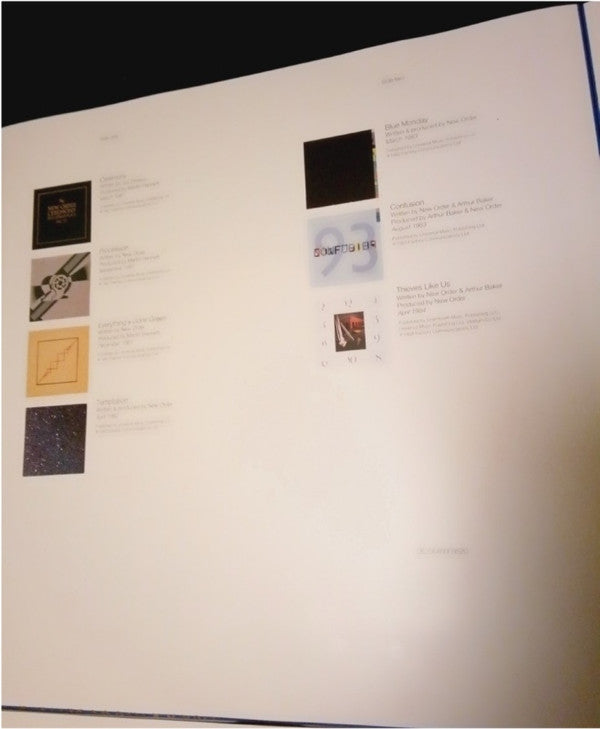 A1. Ceremony A2. Procession A3. Everything's Gone Green (7" Version) A4. Temptation (Original 7" Version) B1. Blue Monday B2. Confusion (UK 7" Promo Edit) B3. Thieves Like Us (7" Promo Edit) C1. The Perfect Kiss (7" Edit) C2. Sub-Culture (7" Edit) C3. Shellshock (7" Edit) C4. State Of The Nation (7" Edit) D1. Bizarre Love Triangle (7" Remix Edit) D2. True Faith (7" Edit) D3. Touched By The Hand Of God (7" Edit) D4. Blue Monday '88 (7" Version) E1. Fine Time (7" Version) E2. Round And Round (7" Version) E3. Run 2 (7" Remix Edit) E4. World In Motion F1. Regret F2. Ruined In A Day (Radio Edit) F3. World (The Price Of Love) (Radio Edit) F4. Spooky (Minimix) F5. Nineteen63 (Arthur Baker Radio Remix) G1. Crystal (Radio Edit) G2. 60 Miles An Hour (Radio Edit) G3. Here To Stay (Radio Edit) G4. Krafty (Single Edit) H1. Jetstream (Radio Edit) H2. Waiting For The Sirens' Call (Rich Costey Radio Version) H3. Turn (Stephen Street Edit) H4. I'll Stay With You ('Lost Sirens' LP Version)
