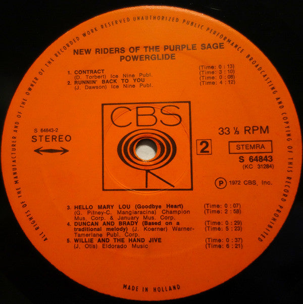 A1. Dim Lights, Thick Smoke (And Loud, Loud Music) 4:15 A2. Rainbow 3:05 A3. California Day 2:40 A4. Sweet Lovin' One 2:30 A5. Lochinvar 3:33 A6. I Don't Need No Doctor 4:47 B1. Contract 3:10 B2. Runnin' Back To You 4:12 B3. Hello Mary Lou 4:12 B4. Duncan And Brady 5:23 B5. Willie And The Hand Jive 6:21