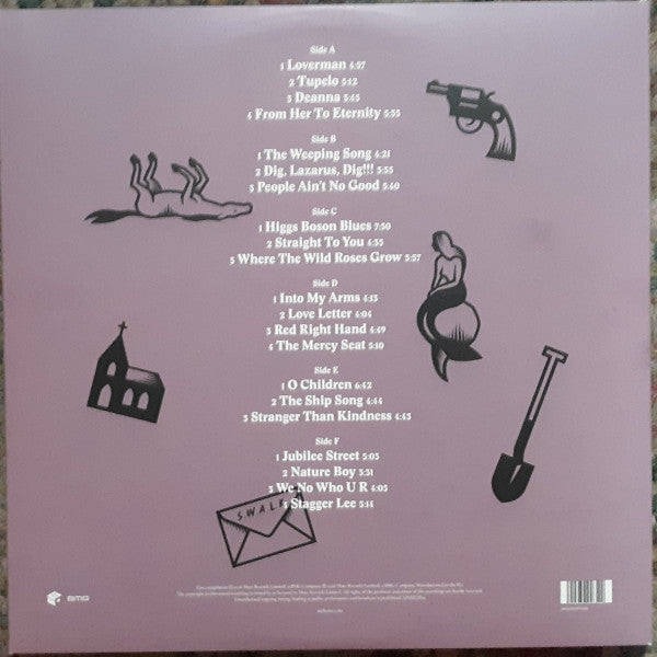 A1. Loverman (Single Version) 4:57 A2. Tupelo (Single Version) 5:12 A3. Deanna 3:45 A4. From Her To Eternity 5:35 B1. The Weeping Song 4:21 B2. Dig, Lazarus, Dig!!! (Single Version) 3:35 B3. People Ain’t No Good 5:40 C1. Higgs Boson Blues 7:50 C2. Straight To You 4:35 C3. Where The Wild Roses Grow 3:57 D1. Into My Arms 4:13 D2. Love Letter 4:04 D3. Red Right Hand (Single Version) 4:49 D4. The Mercy Seat 5:10 E1. O Children 6:42 E2. The Ship Song (Single Version) 4:44 E3. Stranger Than Kindness 4:43 F1. Jubilee Street (Alternative Video Version) 5:03 F2. Nature Boy (Single Version) 3:31 F3. We No Who U R 4:05 F4. Stagger Lee 5:14