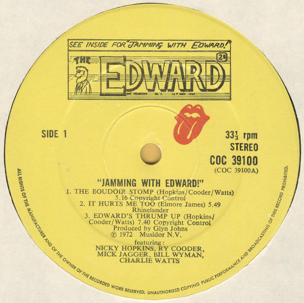 A1. The Boudoir Stomp 5:16 A2. It Hurts Me Too 5:49 A3. Edward’s Thrump Up 7:40 B1. Blow With Ry 11:12 B2a. Interlude A La El Hopo 2:03 B2b. The Loveliest Night Of The Year 0:29 B3. Highland Fling 4:20