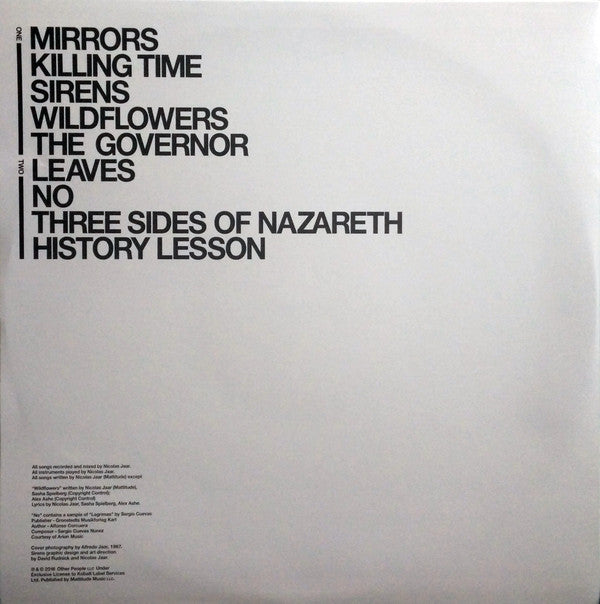 A1. Mirrors A2. Killing Time A3. Sirens A4. Wildflowers A5. The Governor B1. Leaves B2. No B3. Three Sides Of Nazareth B4. History Lesson