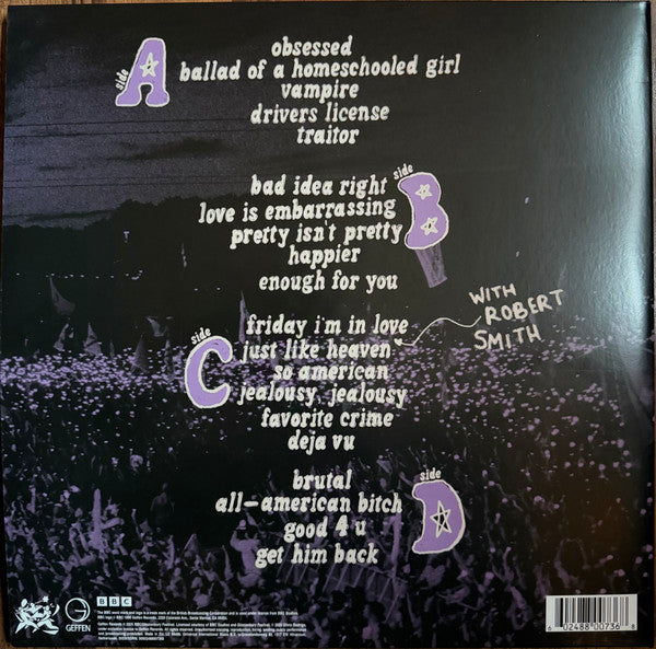 Live from Glastonbury A BBC Recording. Track 11 feastures Friday I'm in Love with Robert Smith from The Cure, Track 12 Just Like Heaven, also with Robert Smith