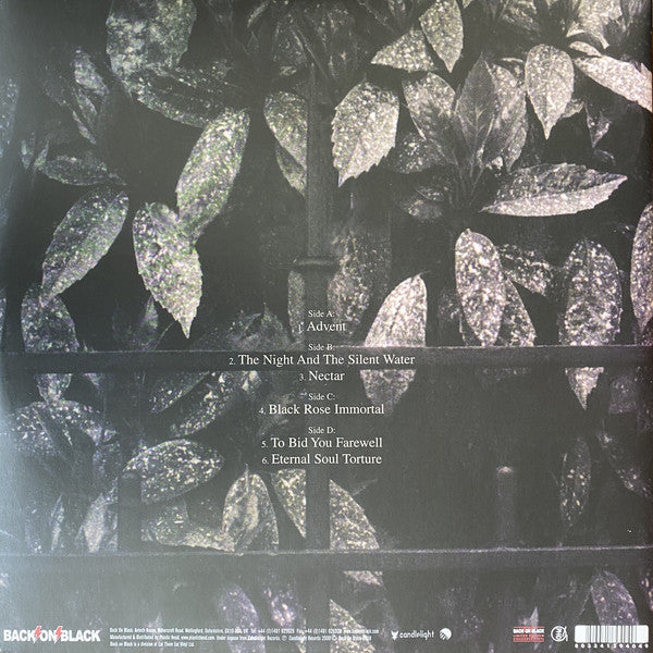 A1. Advent 13:46 B1. The Night And The Silent Water 11:00 B2. Nectar 10:09 C1. Black Rose Immortal 20:14 D1. To Bid You Farewell 10:57 D2. Eternal Soul Torture 8:35