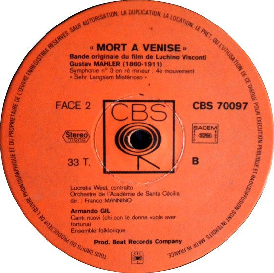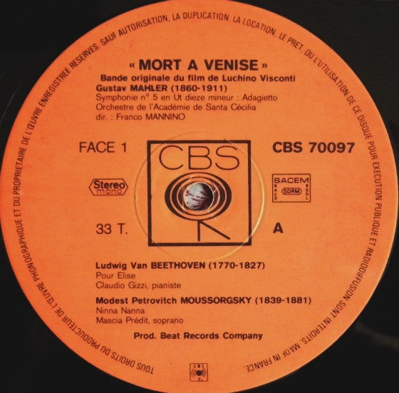 Orchestra Dell'Accademia Nazionale Di Santa Cecilia direction: Franco Mannino - Mort A Venise (Bande Originale Du Film) (LP)