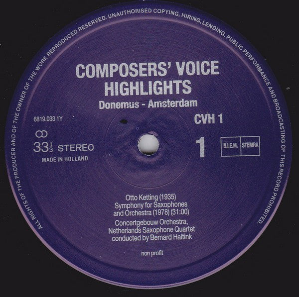 non profit. Compilation (CV 7703, 7604, 8001) as Composers' Voice Highlights.