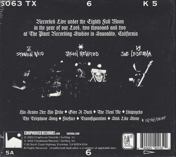 - Recorded Live under the Eighth Full Moon in the year of our Lord, two thousand and two at The Plant Recording Studios in Sausalito, California