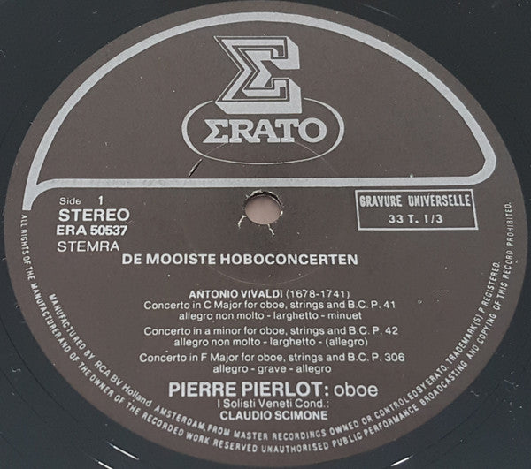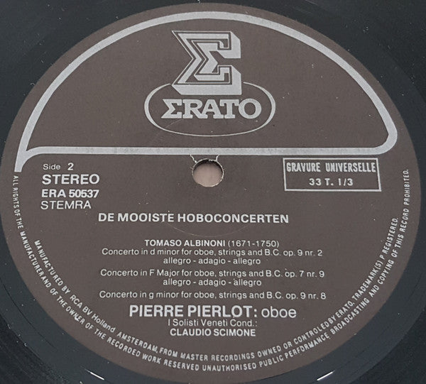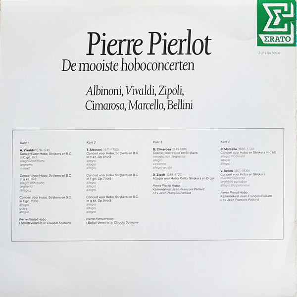 A1. Antonio Vivaldi - Concert In C Grt. P.41 A2. Antonio Vivaldi - Concert In A Klt. P.42 A3. Antonio Vivaldi - Concert In F Grt. P.306 B1. Tomaso Albinoni - Concert In D Klt. Op.9 Nr.2 B2. Tomaso Albinoni - Concert In F Grt. Op.7 Nr.9 B3. Tomaso Albinoni - Concert In G Klt. Op.9 Nr.8 C1. Domenico Cimarosa - Concert Voor Hobo En Strijkers C2. Domenico Zipoli - Adagio Voor Hobo ,Cello, Cello, Strijkers En Orgel D1. Benedetto Marcello - Concert In C Klt. D2. Vincenzo Bellini - Concert Voor Hobo En Strijkers