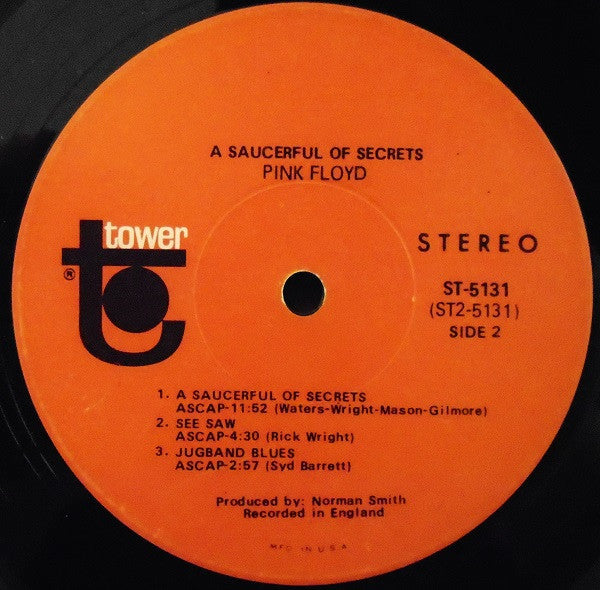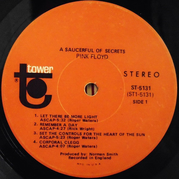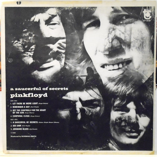 A1. Let There Be More Light 5:32 A2. Remember A Day 4:27 A3. Set The Controls For The Heart Of The Sun 5:23 A4. Corporal Clegg 4:07 B1. A Saucerful Of Secrets 11:52 B2. See-Saw 4:30 B3. Jugband Blues 2:57