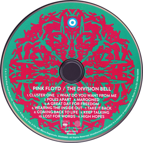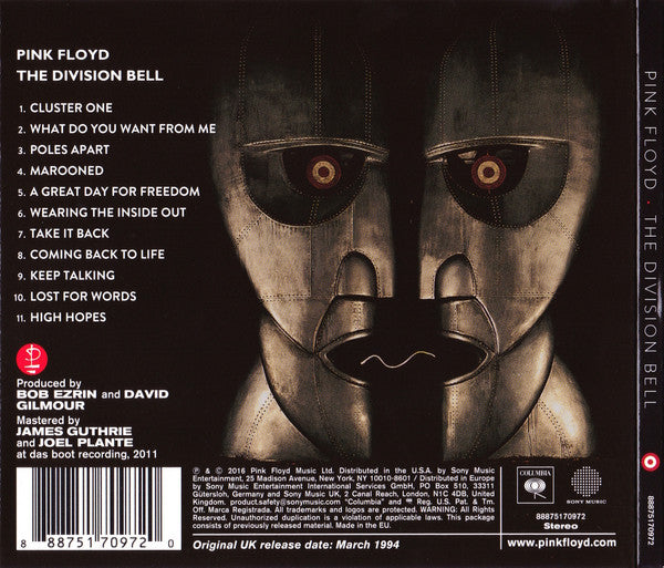 Copyright (c) Pink Floyd Music Ltd.Phonographic Copyright (p) Pink Floyd Music Ltd.Distributed By Sony Music EntertainmentDistributed By Sony Music Entertainment International Services GmbHPublished By Pink Floyd Music Publishers Ltd.Published By Concord Copyrights LimitedRecorded At Astoria (2)Recorded At Britannia Row StudiosRecorded At Metropolis StudiosRecorded At The Creek Recording StudiosMastered At das boot recordingGlass Mastered At SonopressData provided by Discogs