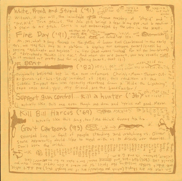 The second pressing was on solid brown vinyl and solid yellow vinyl.