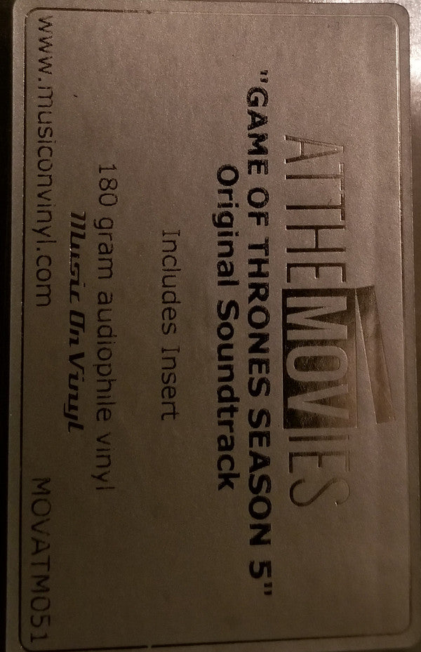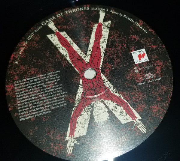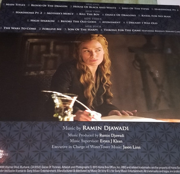 A1. Main Titles 1:45 A2. Blood Of The Dragon 1:33 A3. House Of Black And White 5:08 A4. Jaws Of The Viper 2:31 A5. Hardhome Pt. 1 5:06 B1. Hardhome Pt. 2 4:31 B2. Mother's Mercy 2:14 B3. Kill The Boy 2:07 B4. Dance Of Dragons 3:08 B5. Kneel For No Man 4:45 C1. High Sparrow 3:23 C2. Before The Old Gods 2:37 C3. Atonement 2:54 C4. I Dreamt I Was Old 2:16 D1. The Wars To Come 4:48 D2. Forgive Me 3:17 D3. Son Of The Harpy 5:17 D4. Throne For The Game 1:20