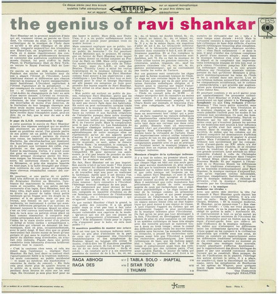 A1. Raga Abhogi 10:17 A2. Raga Des 14:52 B1. Tabla Solo - Jhaptal 5:08 B2. Sitar Todi 16:05 B3. Thumri 5:25