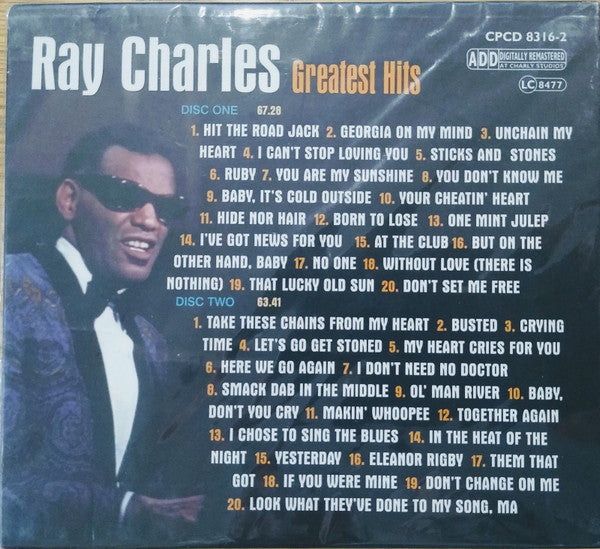 1-1. Hit The Road Jack 1-2. Georgia On My Mind 1-3. Unchain My Heart 1-4. I Can't Stop Loving You 1-5. Sticks And Stones 1-6. Ruby 1-7. You Are My Sunshine 1-8. You Don't Know Me 1-9. Baby, It's Cold Outside 1-10. Your Cheatin' Heart 1-11. Hide Nor Hair 1-12. Born To Lose 1-13. One Mint Julep 1-14. I've Got News For You 1-15. At The Club 1-16. But On The Other Hand, Baby 1-17. No One 1-18. Without Love (There Is Nothing) 1-19. That Lucky Old Sun 1-20. Don't Set Me Free 2-1. Take These Chains from My Heart 2-2. Busted 2-3. Crying Time 2-4. Let's Go Get Stoned 2-5. My Heart Cries For You 2-6. Here We Go Again 2-7. I Don't Need No Doctor 2-8. Smack Dab In The Middle 2-9. Ol' Man River 2-10. Baby, Don't You Cry 2-11. Makin' Whoopee 2-12. Together Again 2-13. I Choose To Sing The Blues 2-14. In The Heat Of The Night 2-15. Yesterday 2-16. Eleanor Rigby 2-17. Them That Got 2-18. If You Were Mine 2-19. Don't Change On Me 2-20. Look What They've Done To My Song, Ma