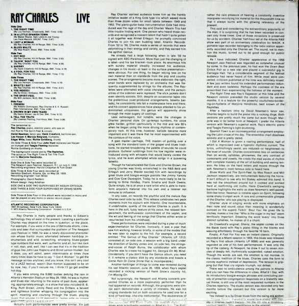 sides A & B were issued on Atlantic SD 1289 titled 'Ray Charles At Newport'