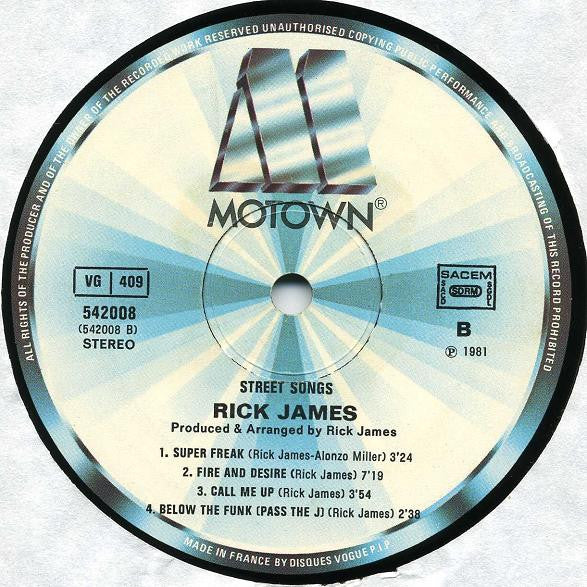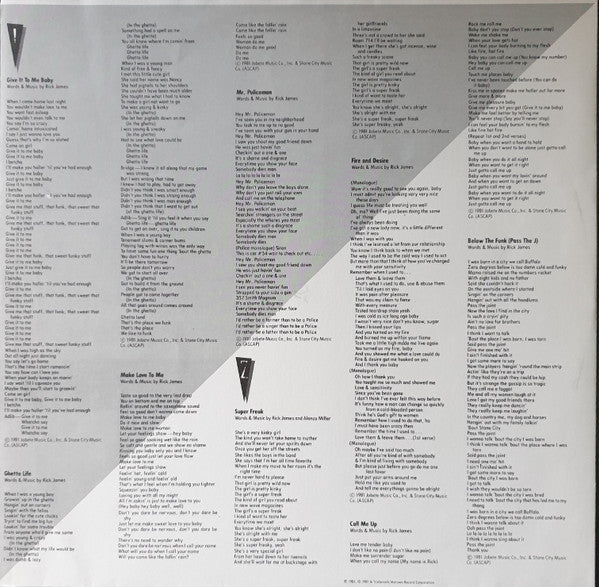 A1. Give It To Me Baby 4:05 A2. Ghetto Life 4:22 A3. Make Love To Me 4:48 A4. Mr. Policeman 4:18 B1. Super Freak 3:24 B2. Fire And Desire 7:19 B3. Call Me Up 3:54 B4. Below The Funk (Pass The J) 2:38
