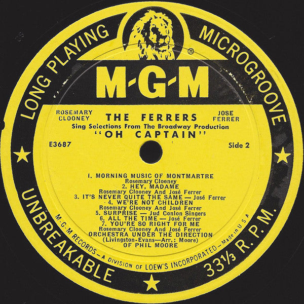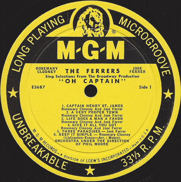 A1. Rosemary Clooney, José Ferrer - Captain Henry St. James 1:41 A2. Rosemary Clooney, José Ferrer - A Very Proper Town 2:46 A3. Rosemary Clooney, José Ferrer - Life Does A Man A Favor 2:45 A4. Rosemary Clooney, José Ferrer - Give It All You Got 4:27 A5. José Ferrer - Three Paradises 2:48 A6. Rosemary Clooney - Keep It Simple 3:43 B1. Rosemary Clooney - Morning Music Of Montmortre 3:00 B2. Rosemary Clooney, José Ferrer - Hey, Madame 2:47 B3. José Ferrer - It's Never Quite The Same 2:45 B4. Rosemary Clooney, José Ferrer - We're Not Children 3:51 B5. The Jud Conlon Singers - Surprise 1:38 B6. José Ferrer - All The Time 1:30 B7. Rosemary Clooney, José Ferrer - You're So Right For Me 2:15