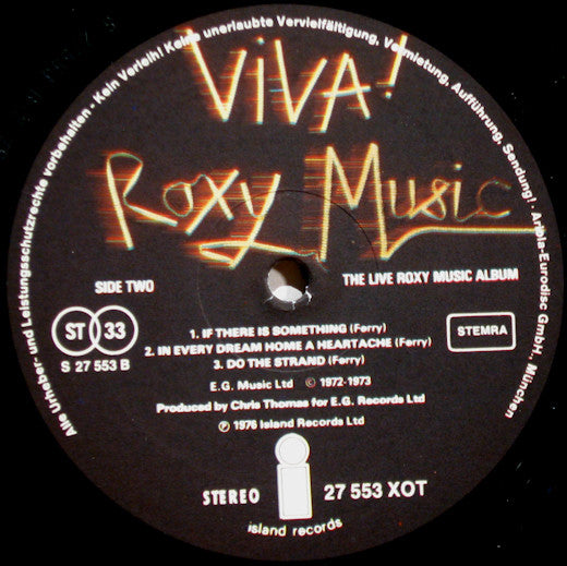 Recorded At Apollo Theatre, Glasgow Recorded At Newcastle City Hall Recorded At Empire Pool, Wembley Mixed At Air Studios Published By E.G. Music Ltd. Produced For E.G. Records Ltd. Phonographic Copyright (p) Island Records Ltd. Printed By Mohndruck Reinhard Mohn OHG Record Company Ariola Eurodisc GmbH
