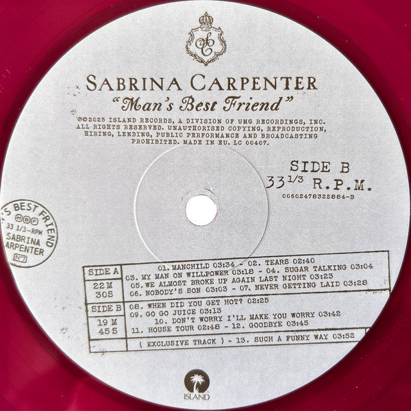 "Runtime [00:42:15 Sabrina Carpenter presents... "Man's Best Friend" (LP) [33 1/3 RPM"