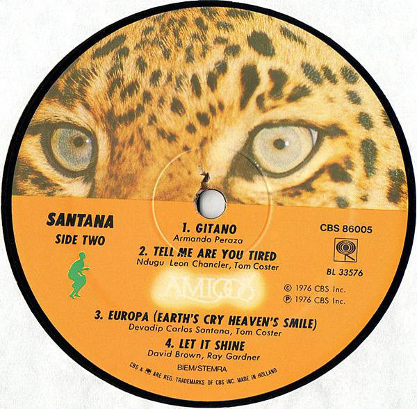 A1. Dance Sister Dance (Baila Mi Hermana) A2. Take Me With You A3. Let Me B1. Gitano B2. Tell Me Are You Tired B3. Europa (Earth's Cry Heaven's Smile) B4. Let It Shine